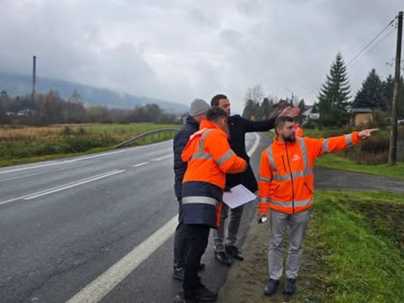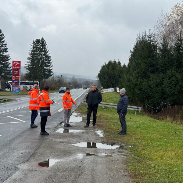 Wspólnie z Michałem Wnukiem - Burmistrz Ustrzyk Dolnych, kierownikiem Wydziału Inwestycji i Drogownictwa Urzędu Miejskiego w Ustrzykach Dolnych Jackiem Kłodowskim oraz innymi pracownikami ustaliliśmy w terenie zakres inwestycji.