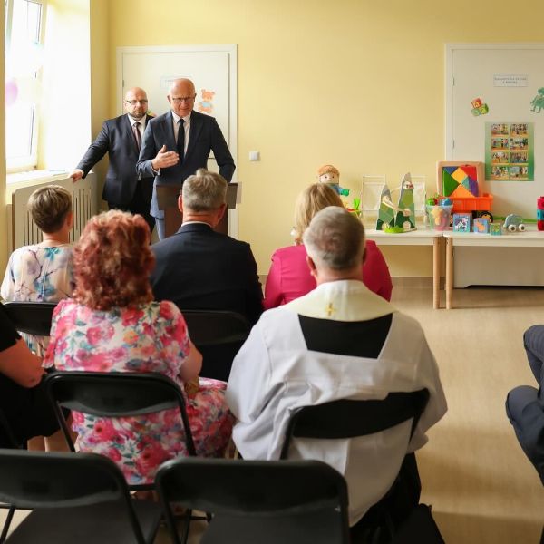 To pierwszy żłobek w mieście, w miejscu gdzie kiedyś była szkoła. To piękna historia, że miejsce które w przeszłości służyło dzieciom i młodzieży dziś rozpoczyna swoje nowe życie. Gratuluję Panu Burmistrzowi Mieczysławowi Piziurnemu wraz ze współpracownikami. Wszystko nowe, funkcjonalne i pachnące świeżością czeka na dzieci, a wraz z tym pełna entuzjazmu i zapału do pracy kadra i dyrekcja. Jest pięknie.