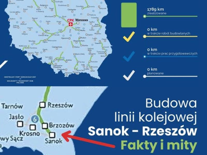 - Nie możemy mówić o linii Sanok - Rzeszów, a co najwyżej Sanok Dąbrówka - Babica (15 km od Rzeszowa) lub Czerteż - Strzyżów (31 km od Rzeszowa). Tak wynika z map w koncepcjach budowy tej linii.