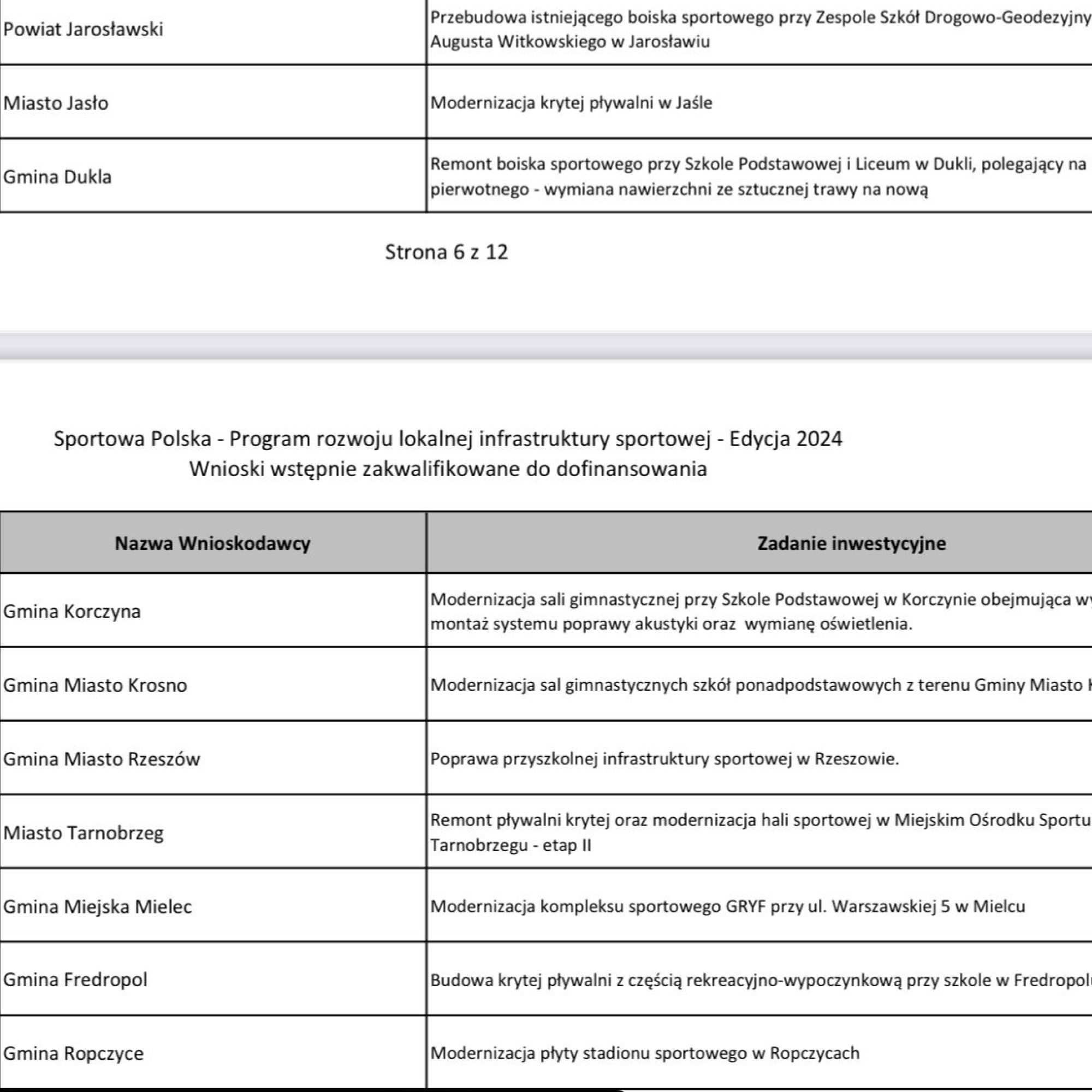 to cieszy, bo każda inwestycja w sport to inwestycja w nasze zdrowie. Na liście z dofinansowaniem są jeszcze inne podkarpackie samorządy, dlatego zamieszczam ją poniżej.